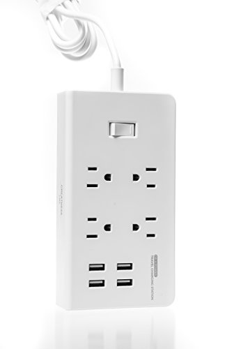 GR-8 Power Compact & Slim Travel Charging Station - International Power Adapter - Surge Protector - Power Strip with 4 Intelligent USB - Free Bonus Included