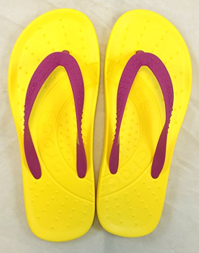 Binding : Apparel Product Description Crocs, Inc. is a rapidly growing designer, manufacturer and retailer of footwear for men, women and children under the Crocs brand. All Crocs brand shoes feature Crocs' proprietary closed-cell resin, Croslite, which represents a substantial innovation in footwear. The Croslite material enables Crocs to produce soft, comfortable, lightweight, superior-gripping, non-marking and odor-resistant shoes. These unique elements make Crocs ideal for casual wear, as well as for professional and recreational uses such as boating, hiking, hospitality and gardening. The versatile use of the material has enabled Crocs to successfully market its products to a broad range of consumers. A basic flip that's basically better - the genuine CrosliteTM material footbed gives you more cushion and comfort than the EVA kind. No need to overthink it - get Crocs comfort in its simplest for. 0