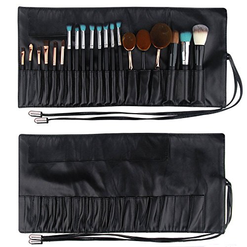 Samtour Makeup Brush Rolling Case Pouch Holder Cosmetic Bag Organizer Travel Portable 18 Pockets Cosmetics Brushes Black Leather Case