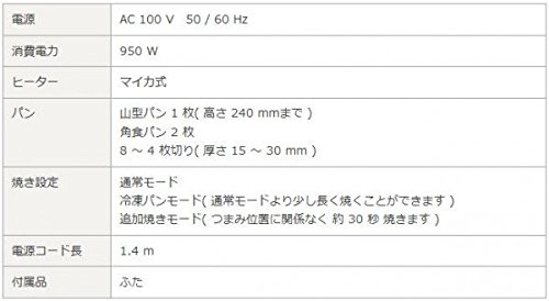 스타일리쉬한 밀러디자인.홈 베이커리의 산형빵 대응 와이드 슬롯.먼지를 막는 뚜껑 부착에,뚜껑을 했 채로의 사용 방지 설계.조작부는 정면으로 집약하고, 폭을 억제한 슬림 설계.각식빵은 2매 늘어놓고, 산형빵은 높이240mm까지의크기가 탐(그을림)고 있습니다.밖은 바삭,안쪽은 가볍게,구이 색조절로 좋아하는 구이 가감에.