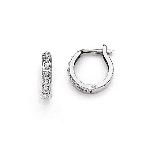 14k White Gold Diamond Fascination Round Hinged Hoop Earrings / Diamond Ctw. 0.01