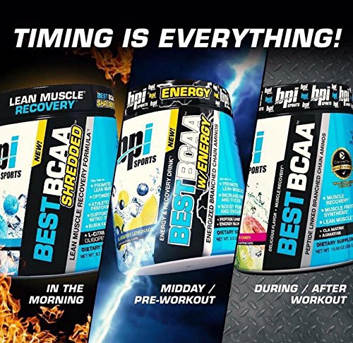 ReleaseDate : 2017-06-12 Studio : BPI Sports Publisher : BPI Sports Binding : Health and Beauty Product Description Best BCAA with Energy isn't just a branched-chain amino acid formula - it's that burst of energy you need to get through your toughest workouts, or even an afternoon slump. Best BCAA with Energy combines the same Oligopeptide-Enzymatic Technology as Best BCAA, which may provide a faster, more efficient absorption rate than ordinary free-form aminos. In addition, this all-inclusive formula is enhanced with a blend of ingredients to help promote more energy, more focus and more endurance. Take it in the middle of the day for a quick refresh or as a pre-workout. 0