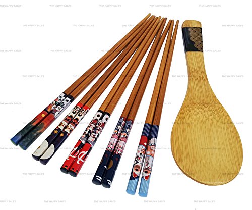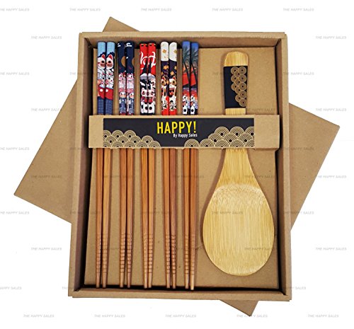 Happy Sales CH-81, Bamboo Chopsticks Gift Set Rice Paddle Included Lucky Cat