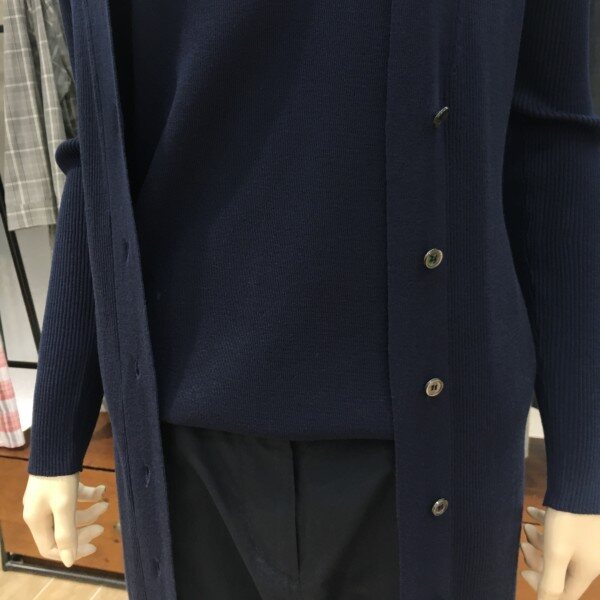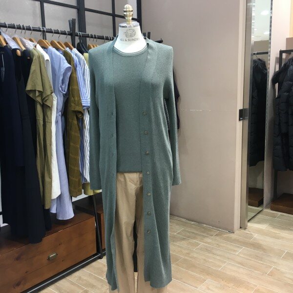 여성스러운 무드의 골지 롱 가디건을 소개해드려요. 톡톡한 터치감의 가벼운 면과 아크릴 혼방 소재로 통기성이 좋아 봄에서 가을까지 활용하실 수 있는 아이템입니다. 숄가디건 느낌으로 부담 없이 입을 수 있으며, 전체적으로 골지라인으로 들어가 여리여리해보이는 효과가 있구요. 바디 라인에 딱 달라 붙어 슬림한 라인을 연출해주어 더욱 여성스러운 무드가 느껴지는 가디건입니다. 종아리 까지 내려오는 아주 롱항 기장감과 여러개의 단추로 오픈해도 클로징해도 느낌있는 가디건 제품입니다. 특별한 디테일이 없지만 꾸민 듯 안꾸민 듯한 데일리룩을 완성하실 수 있답니다. (안에 이너로 입은 세트겸의 나시 제품은 A8F7K304로 검색해보시면 됩니다. )총장길이는 55사이즈 기준으로 117cm 입니다.