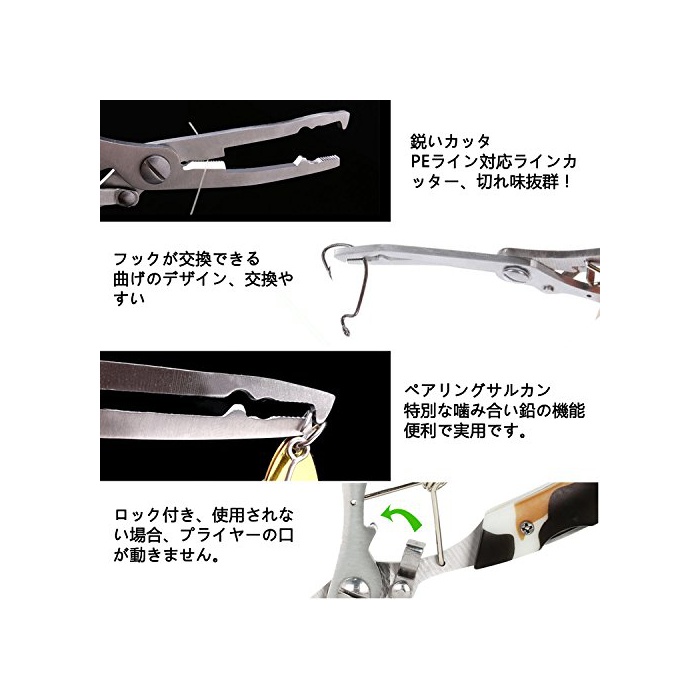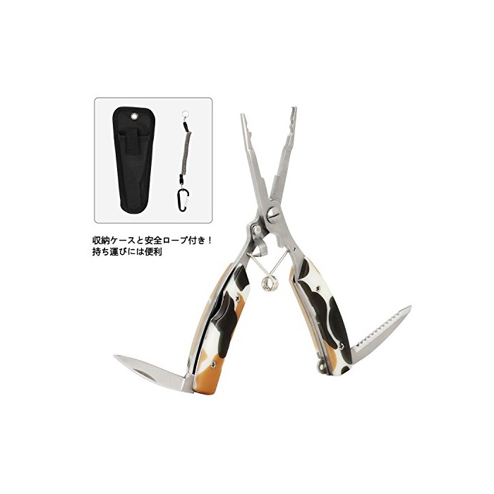 스테인레스제가 강인한 구조,인간공학에 기초하는 핸들이 쥐기 쉬운 그립을 채용,또한 핸들부에 나이프 두 개 내장 하고 있기 때문에 아웃도어에 도움이 됩니다.프라이어 케이스가 붙고, 휴대 편리합니다.안전 로프가 부착,낙하 방지가 가능합니다.