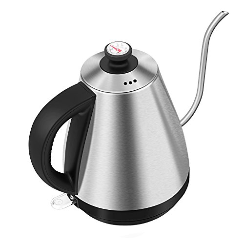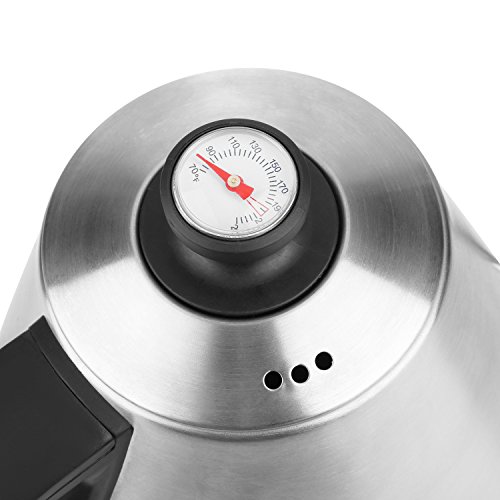 【BUILT-IN THERMOMETER】: Water temperature is one of the most important variables while brewing coffee, an ideal coffee brewing temperature is between 198 °F to 205 °F, the built-in thermometer on the lid tells you accurate water temperature, you'll find it is super easy to be a barista that never loss.