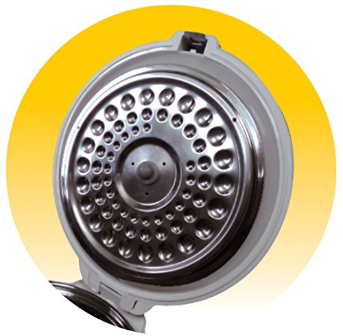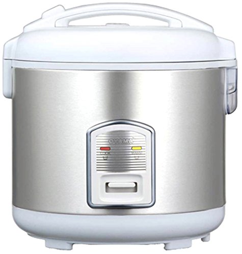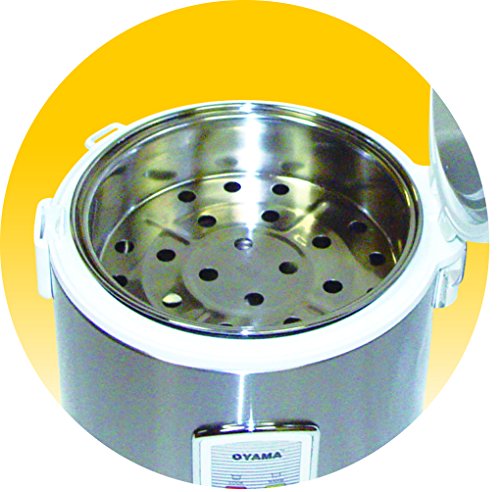 Oyama 10-cup White and Stainless Steel body with Stainless Steel Cooking bowl and Stainless Steel Steamer Tray. No non-stick coatings are used. The stainless steel cooking bowl has a Triple-layered bottom for uniform heating without burning of the rice. This cooker is tailored for people looking to cook meals without chemicals from non-stick material possibly leaching into their foods. This cooker also uses 3-dimensional heating (base, side and lid) for keeping rice warm for extended periods after cooking. This enables this rice cooker to keep warming past the normal 12 hour limit up to 24 hours. The stainless steel steamer tray can be used steam vegetables, meats and poultry or any other foods that can be steamed cooked.Feature