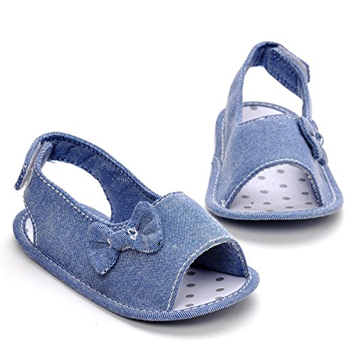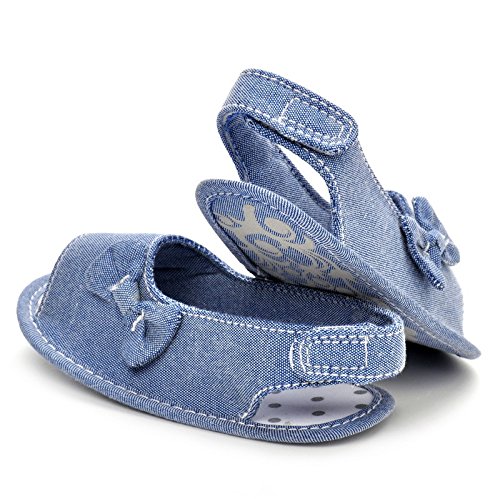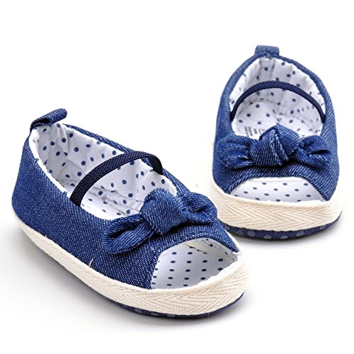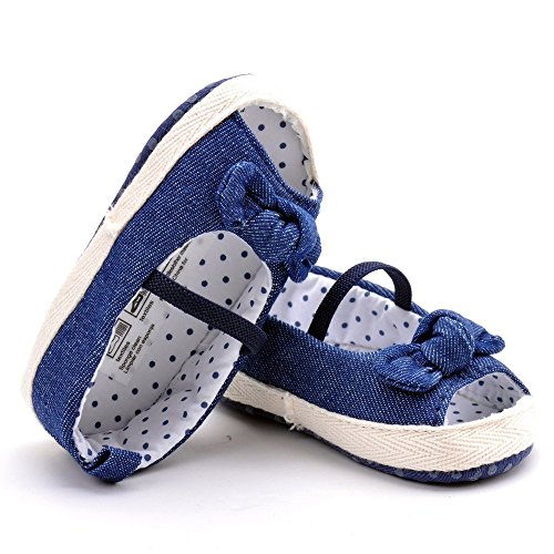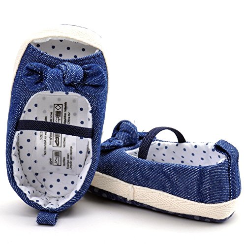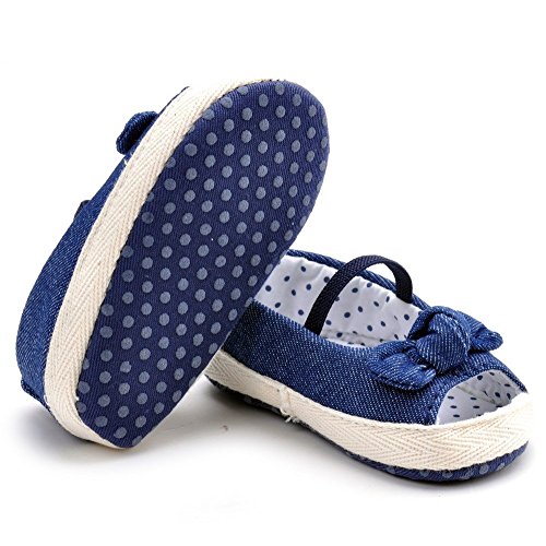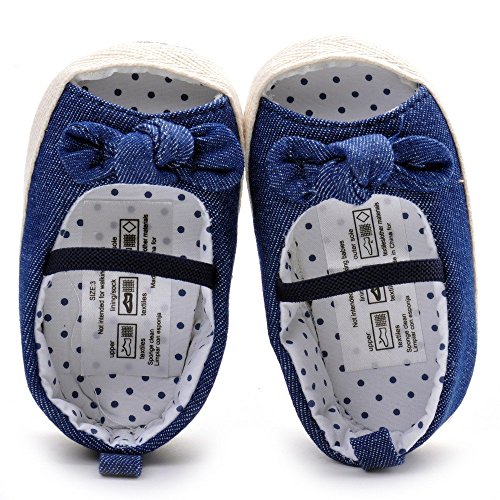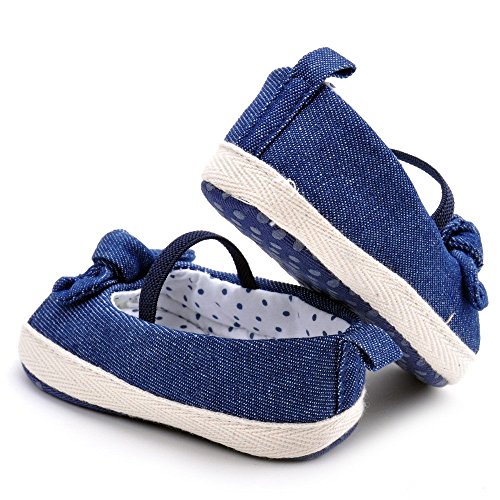 -. Feature : For 3-18 months baby / Easy take on and off / soft cotton sole / Nice denim with bow decor / Return or exchange is free