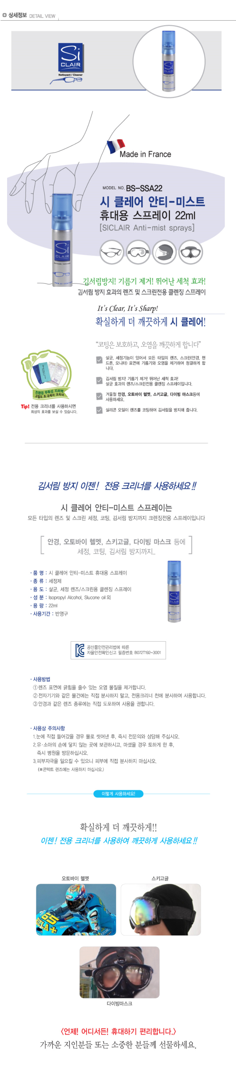 - 품명 및 모델명시 클레어 안티-미스트스프레이_22ml