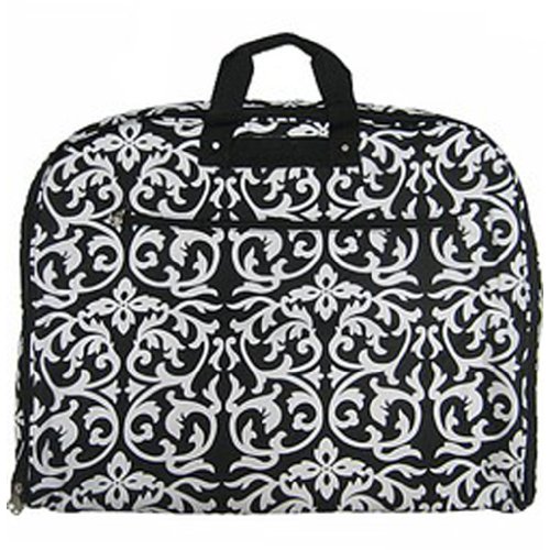 -. Binding : Apparel -. Brand : scarlettsbags -. Color : Black White -. Department : womens -. Feature : Size : 24 x 20 in. / Material: Canvas / Opens up to size 24 x 40 inches / Zipper Compartment Inside w/ Clothes Hanger and also inside pockets / Color: Black and White -. PackageQuantity : 1 -. ProductGroup : Apparel -. ProductTypeName : BAG -. Size : 24 x 20 in. -. Title : Black White Damask Print Garment Bag Travel Dance Lage