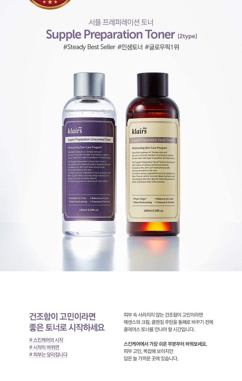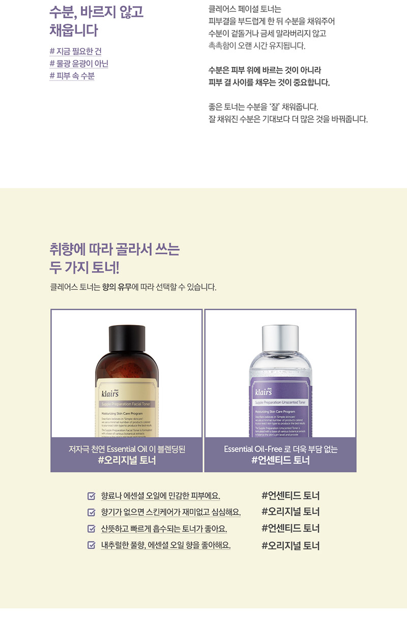 인생토너, 클레어스 서플프레퍼레이션 토너의 무향(에센셜 오일 프리) 버전으로