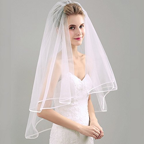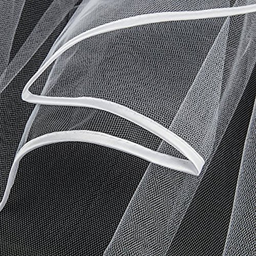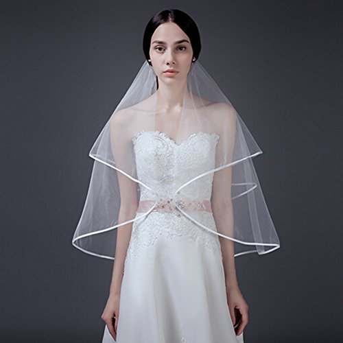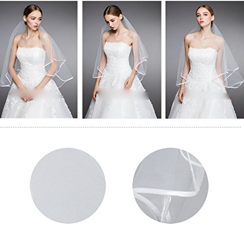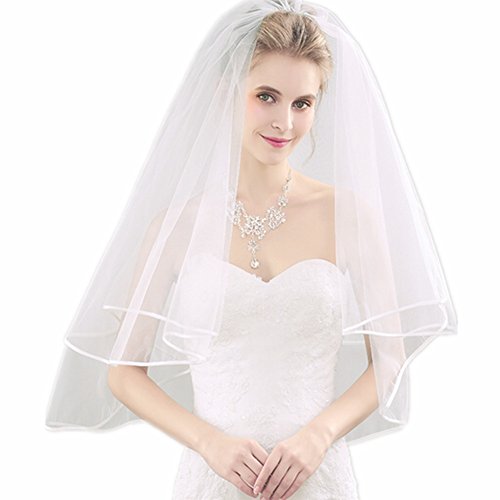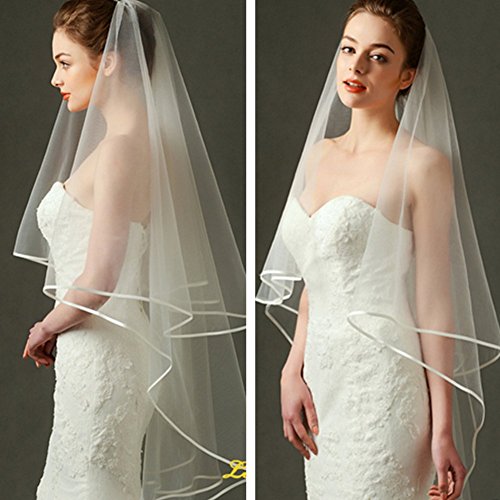 Binding : Apparel Product Description Wedding Veil Short Bridal Veil 2 Layers Tulle Veils with Comb Lace Ribbon Edge White/Ivory Veil 2 Layers Tulle Veils design with Lace Ribbon Edge and inserted comb,easy to wear,whether fixed on the top or back of head. Soft durable tulle design with serging,anti laddering,elegant Bridal Veil will give you a new look in wedding. Perfect for your bachelorette night,bridal shower or daily photograph.