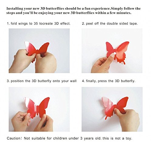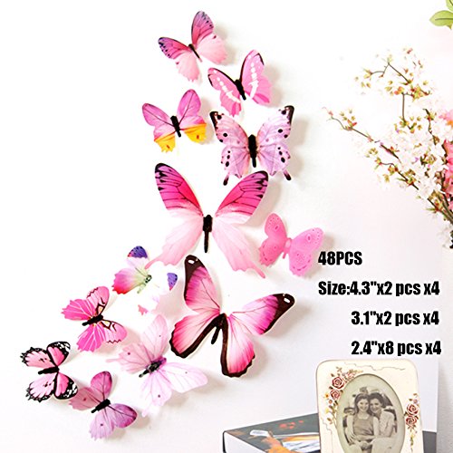 3D Butterfly Wall Stickers 48PCS Colorful Decals DIY Removable Home Decor for Fridge,kitchen room living room