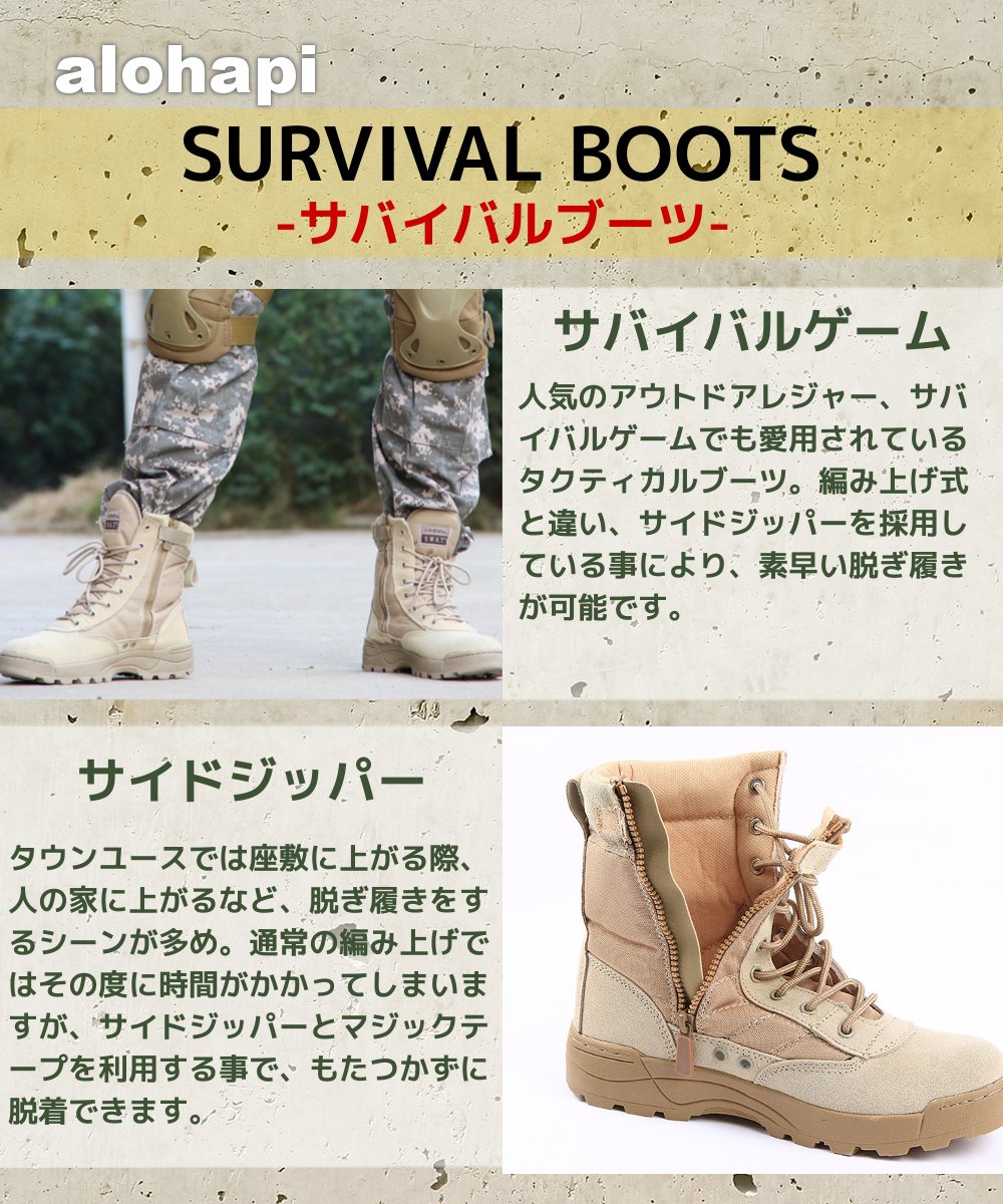 Alohapi SWAT Tactical boots side zipper type military boots jungle boots