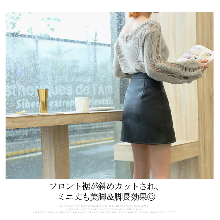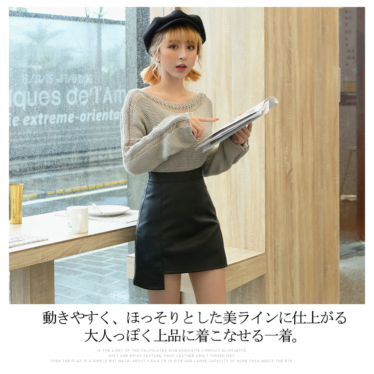 | 秋冬シーズンに大注目のマットレザーミニスカート。柔らかなPUレザー素材を使用して、上品さを演出してくれます。ハイウエストでトップスinにしてすっきりとしたボディラインにフロント裾が斜めカットされ、ミニ丈も美脚&脚長効果◎動きやすく、ほっそりとした美ラインに仕上がる大人っぽく上品に着こなせる一着。 | |