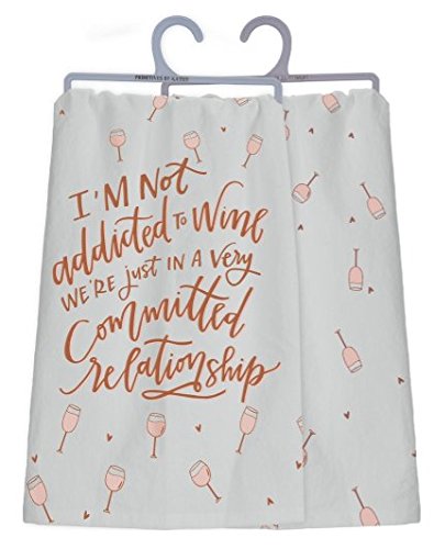 - Dish Towel reads "I'm Not Addicted To Wine We're Just In A Very Committed Relationship"
