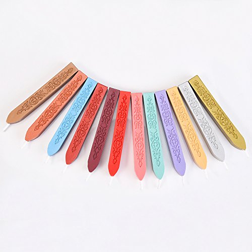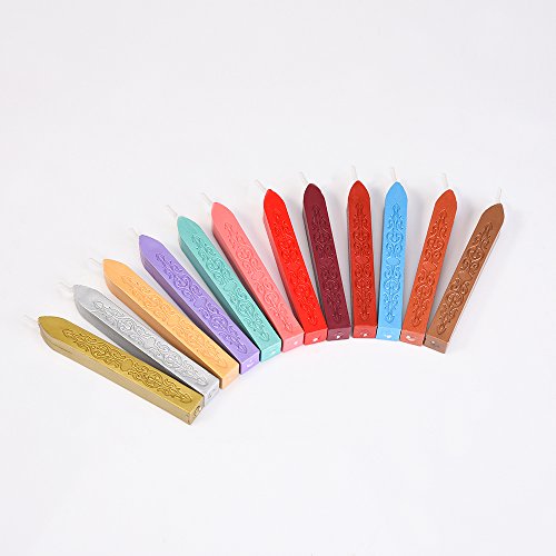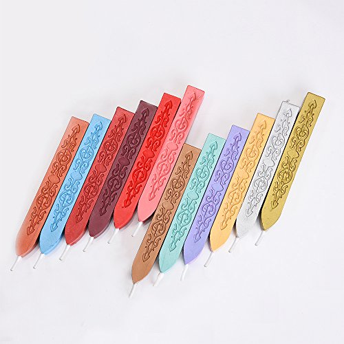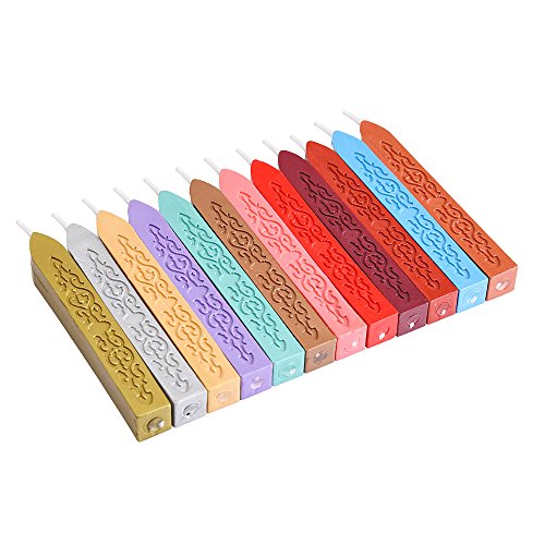 Mudder 12 Pieces Antique Sealing Wax Sticks with Wick for Retro Vintage Wax Seal Stamp, 12 Colors