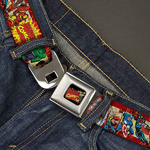 ReleaseDate : 2017-09-02 Studio : Buckle-Down - Parent Vendor Code Publisher : Buckle-Down - Parent Vendor Code Binding : Apparel Product Description Buckle-Down's iconic Seatbelt Belt is a cool, smart, and exciting blend of fashion and function. Always a conversation starter, our Seatbelt Belt adjusts to perfectly fit your waist while showcasing your unique sense of style. Our Seatbelt Belts are made with authentic automotive style seatbelt buckles making them easy to open and close at the push of a button. Our Seatbelt belts are 1.5 inch wide and are infinitely adjustable for pants sizes 32 to 52. This product is Handcrafted in USA by Buckle-Down Inc. and Officially Licensed by Marvel Comics. 0