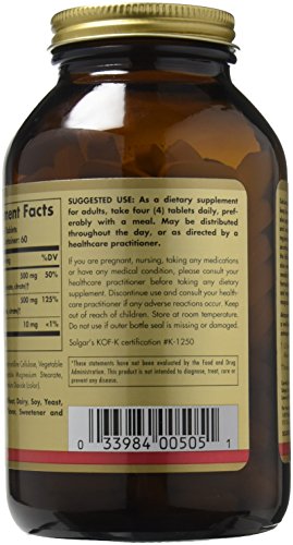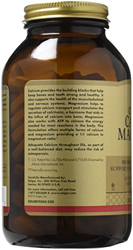 SPECIAL FORMULATION: The combining of calcium and magnesium in these Solgar tablets is that in addition to the ways the body benefits from each of these ingredients, magnesium helps to regulate calcium transport and aids in the influx of calcium into bone. This formulation offers multiple forms of calcium and magnesium providing a 1:1 calcium to magnesium ration