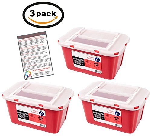 Sharps Container 1 Gallon - Plus Vakly Biohazard Disposal Guide (3 Pack)