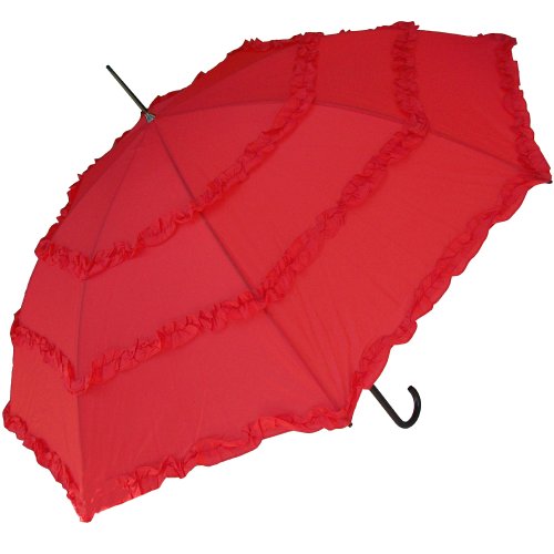 Studio : RainStoppers Publisher : RainStoppers Binding : Sports Product Description This RainStoppers 48" arc Auto Open, Ladies' Parasol umbrella with three ruffles is constructed of a durable metal shaft, ribs and stretchers and finished with a matching plastic hook handle. 0