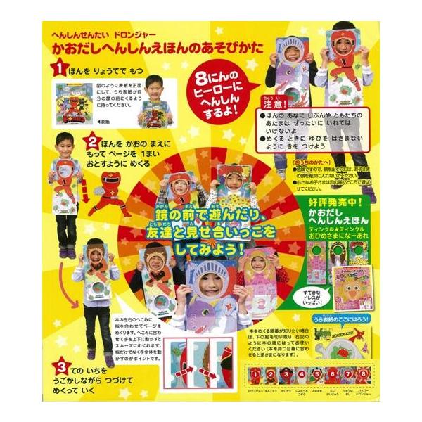 【商品説明】 定価(税込み):1,058円 値引き:10% OFF 人の形をした絵の丸い穴に顔をあてはめると強いヒーローに大変身! バーゲンブック 新品 特価 格安 子ども ドリル キャラクター本 DVD キャラクター |