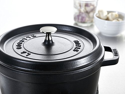 Interior black matte enamel finish produces a natural non stick surface that is more resistant to scratches and chips. It won't discolor or rust and never needs seasoning.