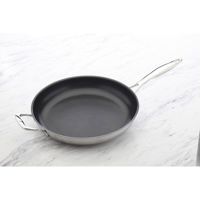 Looking to cook healthier, easy to clean meals? Then the Prestige Clad 12.5" fry pan is just the piece for you. Made with our groundbreaking diamond crystal nonstick coating, your Prestige Clad surface allows for cooking with little to no oil, while the sleek stainless steel body will bring a splash of elegance to your kitchen. As with all pieces in the Prestige Clad line, this fry pan is built from a durable five layer base that includes a 18/0 magnetic stainless steel base, pure and alloy aluminum layers, an 18/10 stainless steel layer, and is topped off with Swiss Diamond's XD diamond crystal coating. With long handles specifically designed for a perfect and comfortable fit, this pan allows for maximum control. Oven safe up to 500 (260 Degree C), you'll be able to make delicious, versatile meals effortlessly.Feature