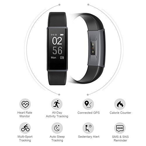 Features: All-day Activity Tracking: Accurately records all-day activities like steps, distance, calories burnt and active minutes. Multi-Sport Tracking: Records exercises like running, walking, riding, treadmill, fitness, spinning and yoga, etc. Tap the tracker to monitor a variety of exercises and read exercise data report in APP. Heart Rate Monitor: Tracks real-time heart rate automatically and continuously. And you can set the peak zone. Sleep Monitor: Automatically tracks your sleep duration and consistency with comprehensive analysis of sleep Patterns to help you to adjust. Sedentary Alert: Set reminders for periods of time of inactivity. Alarm, Call, SNS, SMS Alert: silent alarms not to disturb your partner. receive notifications from other apps (Facebook, WhatsApp, LinkedIn, Instagram, and Twitter) on your tracker screen. Remind you of incoming call, text message on your tracker screen and vibrate. Remote Camera Shooting: Operation on the touch key could remotely control photography shooting. Wrist Sense: The screen is automatically lit up when you turn your wrist towards you. Model: ID130 HR Bluetooth Range: 10 Meters (32.8 feet) CPU: Nordic nRF52832-QFAA Sensor: KIONIX KX022-1020 HR Sensor: silicon labs Si1142 Screen size: 0.96 inch Screen type: OLED Material: upper casing: PC; strap: TPU Wrist size: 5.4 inch - 7.6 inch Battery type: Li Battery 65mAh Working time: 5-10 days Charging method: USB charging Charging time: 1-2 hours Weight: 0.8 oz (22.6g) 0