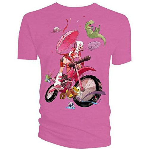 -. Binding : Apparel -. Brand : Marveltshirt -. Color : Pink -. Department : mens -. Feature : Marvel Gwenpool bike Mens tee Shirt / 100% cotton. / Nice Cute Gwenpool print on a pink shirt. -. ProductGroup : Apparel -. ProductTypeName : SHIRT -. Title : Marvel Gwenpool Bike Mens Tee Shirt PINK