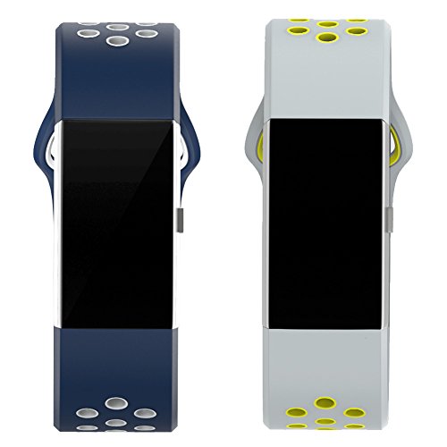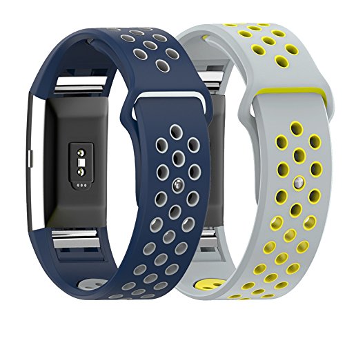 Replacement Bands for Fitbit Charge 2 Size L or S,HJZ 2 Pieces Breathable Colorful Bracelet Set Smart Watch Strap Silicone Wristband (Navy & Gray)