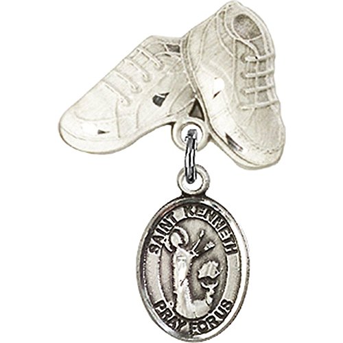 -. Title : Sterling Silver Baby Badge with St. Kenneth Charm and Baby Boots Pin 1 X 5/8 inches