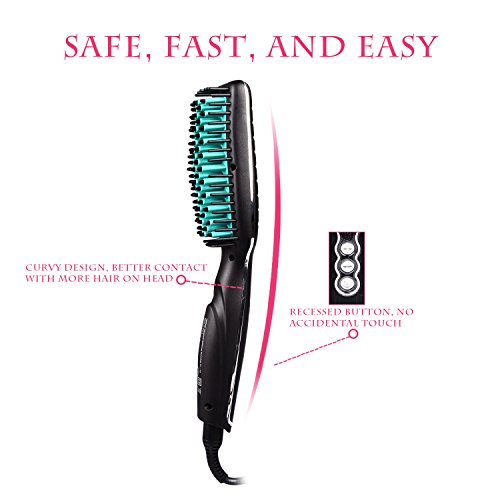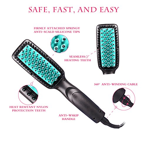 ANTI-SCALD TECHNOLOGY ASSURANCE-- Get rid of the old-fashioned splint hair straightener, which difficult to control and burns your hair hair and skin easily. This new hair straightener hot brush is equipped with firmly attached anti-scald silicone tips. It makes straightening your hair as easily as combing it.