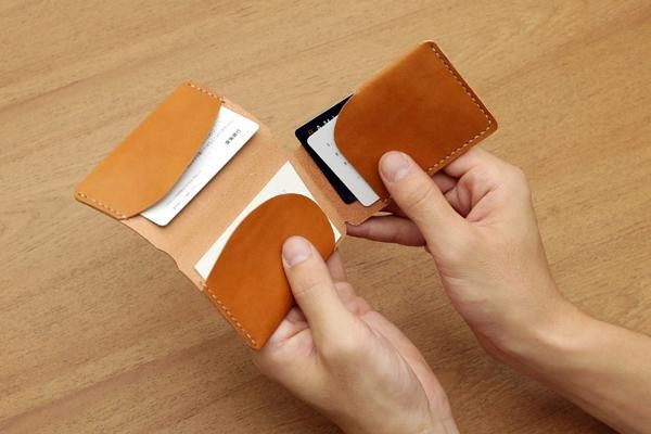 | 3方に広がり収納力と携帯性に優れたカードケースを作れるキットです。1枚のつながった革を折りたたんで縫い合わせます。革は使うほどに味わい深くなるコンビヌメ革を使用。縫い穴はあけ済みなので、どなたでも簡単に手縫いをお楽しみいただけます。 |