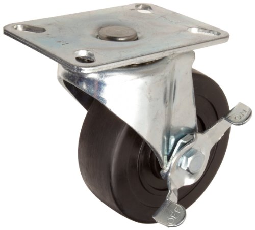 E.R. Wagner Plate Caster, Swivel with Pinch Brake, Hard Rubber Wheel