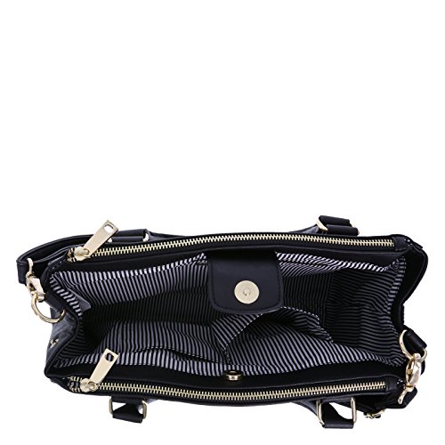 Product Description Quilting details are seen everywhere. The Quilted Serenity Satchel by designer Christian Siriano features finely detailed quilted construction with two side snap closures, beautiful lined interior, two zippered compartments with a large middle section--featuring one side zipped pocket and two open and secured with one top magnetic closure--dual carry handles with a 5" drop, and a detachable crossbody strap that extends to a 27" drop. Measures approximately 9"HX13"WX4"D. Manmade materials. 0