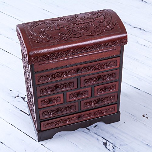 NOVICA Wood and leather jewelry box, Hummingbirds