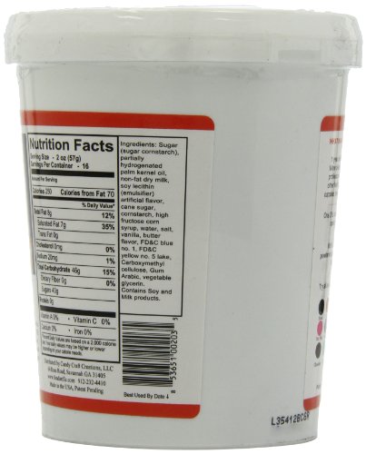 First orginial Buttercream Flavor; No Trans Fats; Glutten Free; Fruit flavors are a good source of vitiam C; 1 year shelf life p-nut and tree nut free; contains milk product