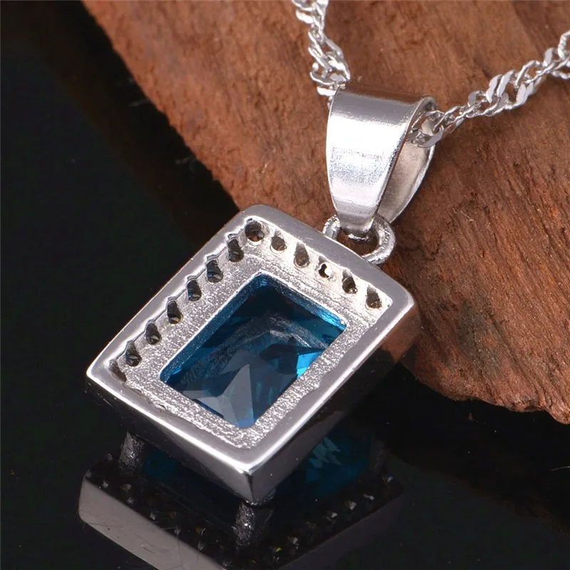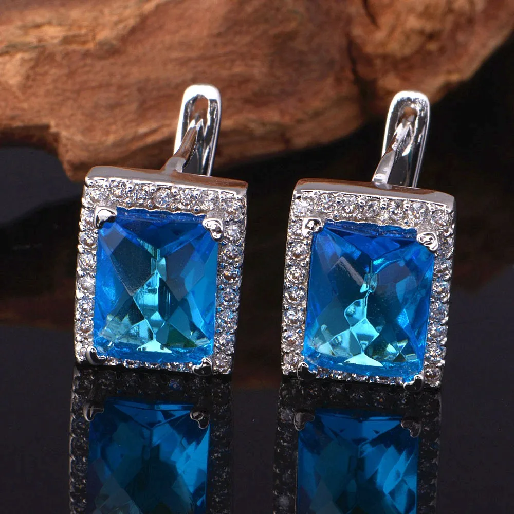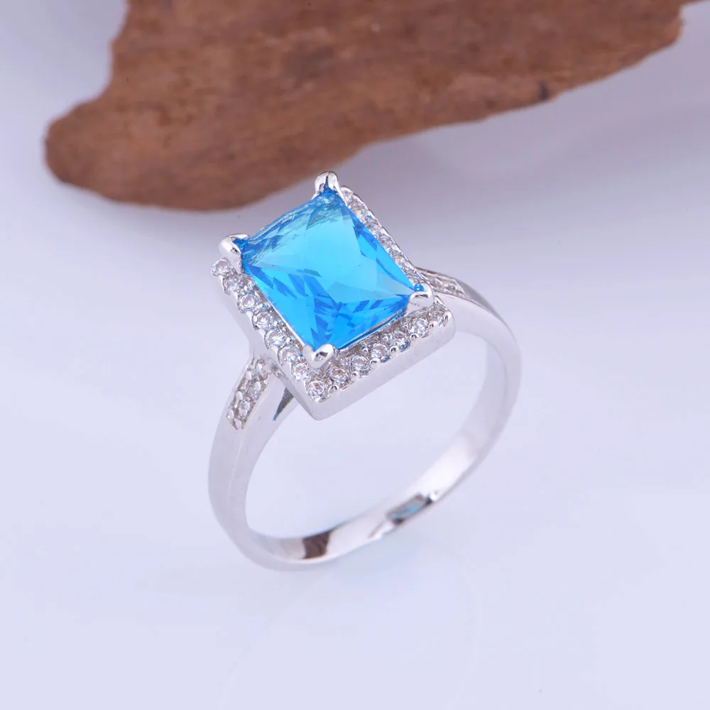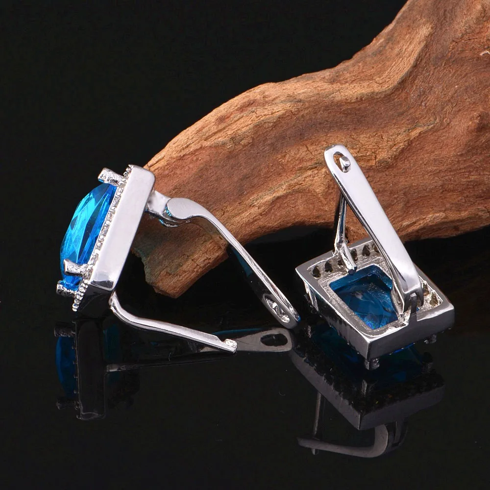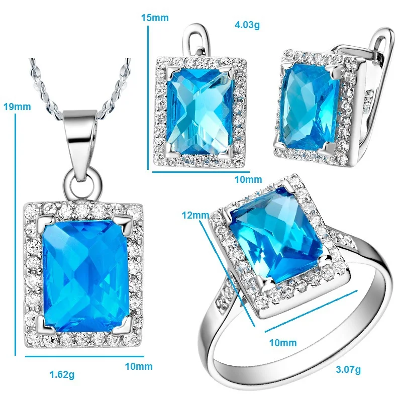 Model Number:Square Ocean Blue Crystal Zircon jewelry sets