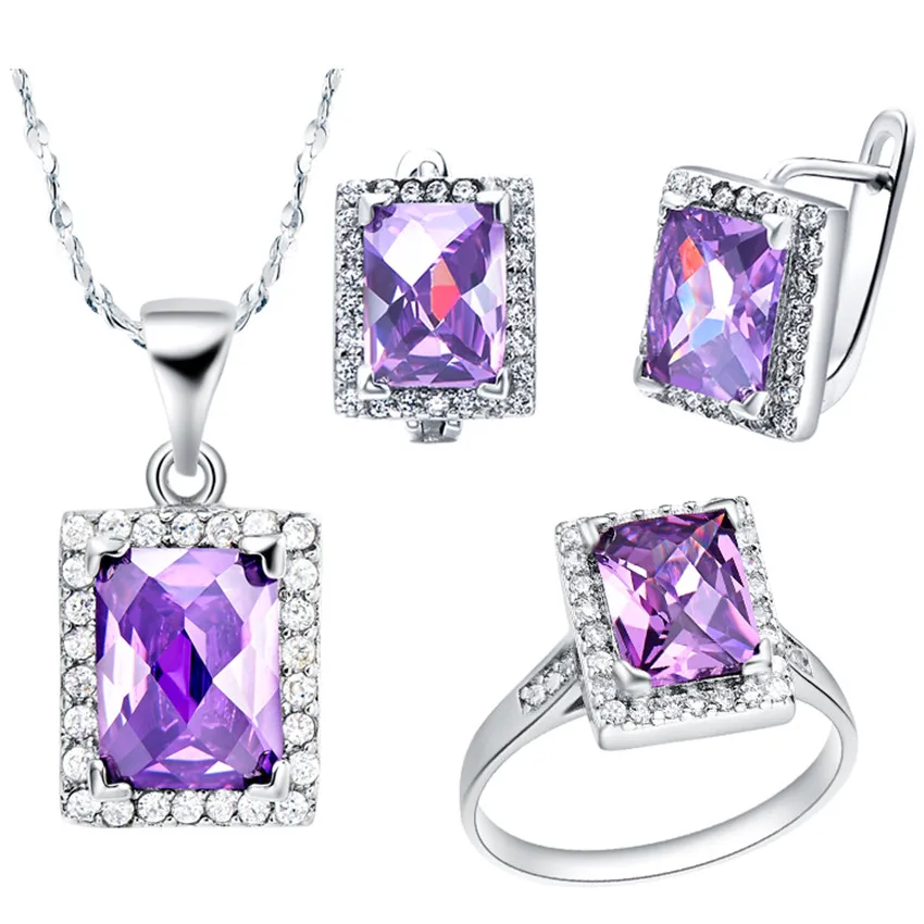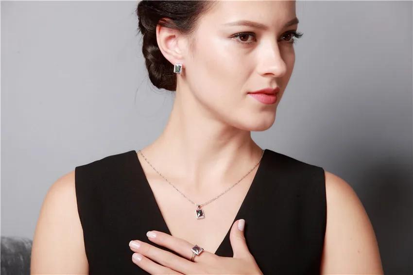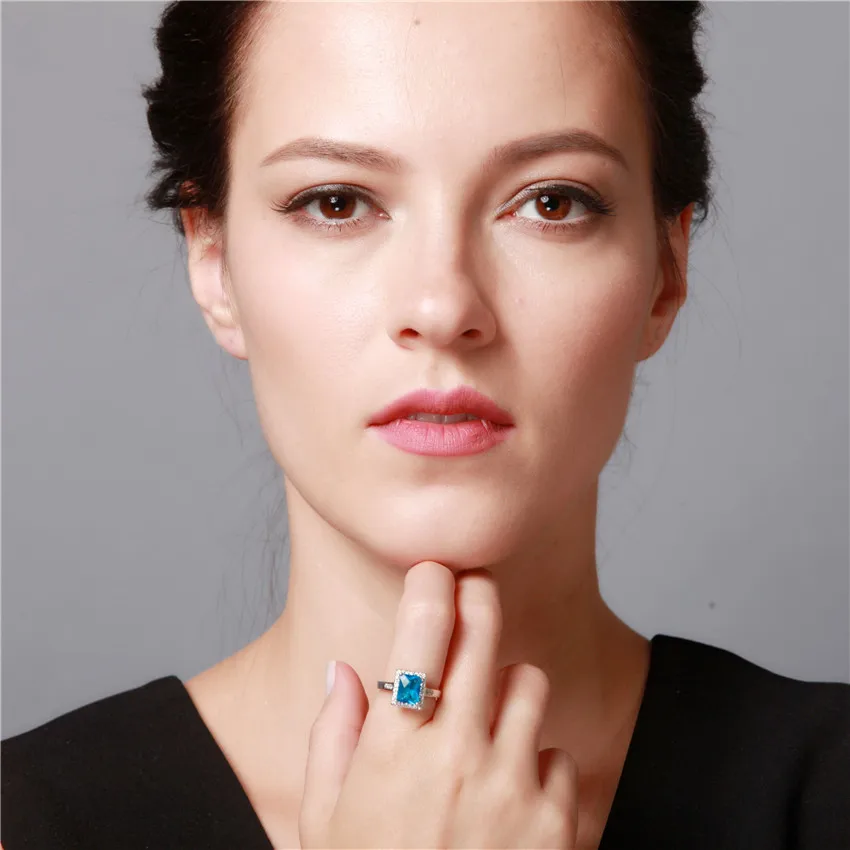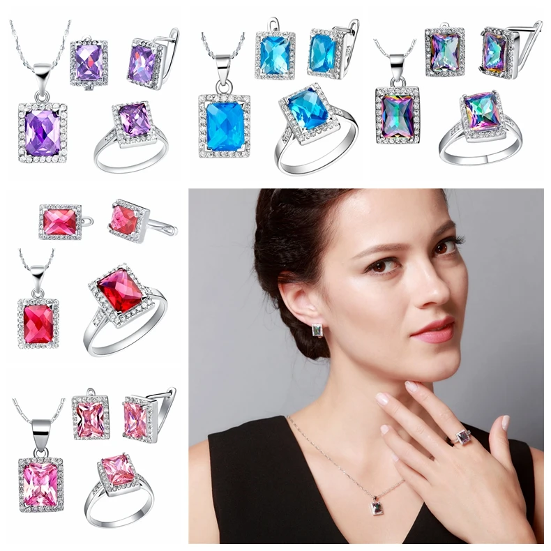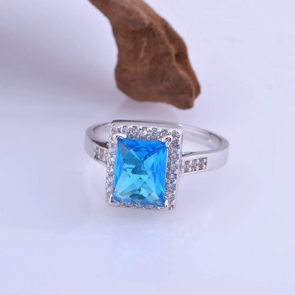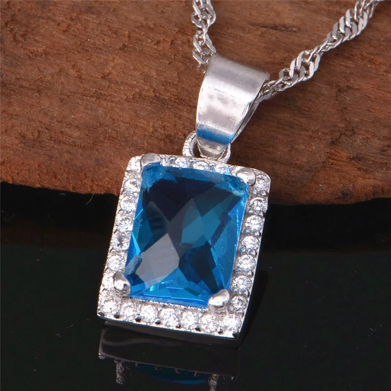 Model Number:Square Ocean Blue Crystal Zircon jewelry sets