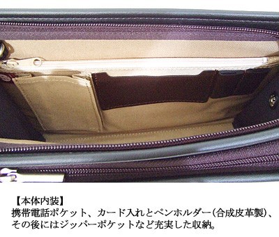 ・本体メインルームにオープンポケット×1、カード入れ×1、ペンホルダー×2、ジッパーポケット×1
