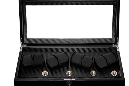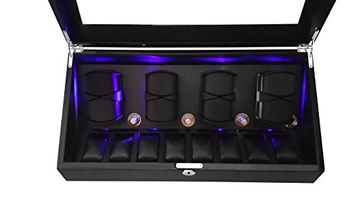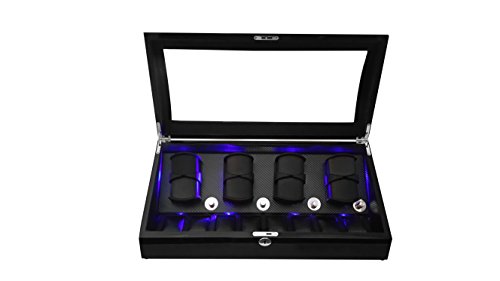 Lindberg & Sons Uhrenbeweger und Uhrenbox fur acht Automatikuhren mit Stauraum fur acht weitere Armbanduhren Schwarz Holz Kunstleder LED - UB8224blbl