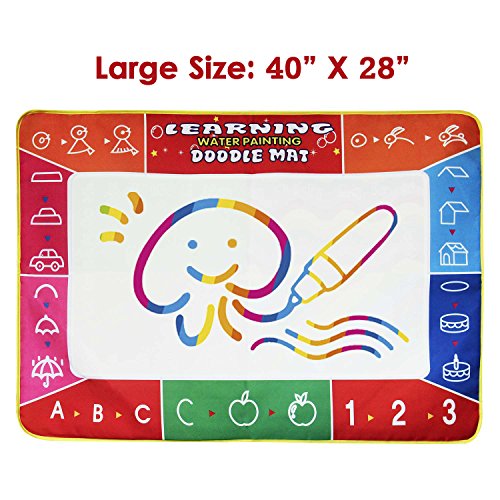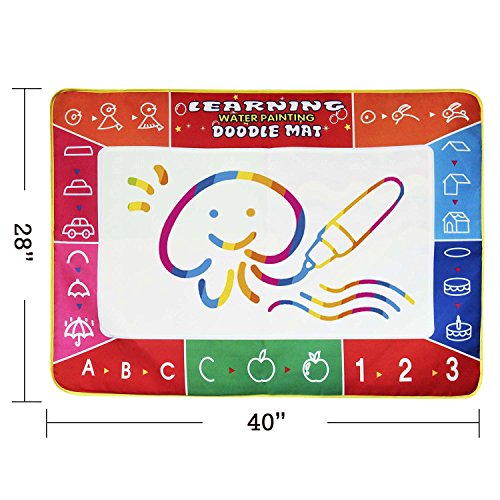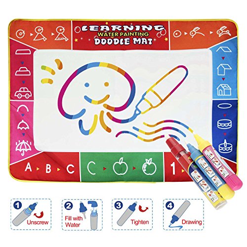Choose Us with No Worry: If you are not satisfied to our product, please feel free to contact us for return or full refund. The painting mat is waterproof. No need to worry that if it will make trouble for you. Just fill the pen with water and leave them alone to create what they are thinking about on the magic mat. Because the water drawing board is portable, so it could be taken outdoor conveniently. Hundred percent perfect for children's gift also.