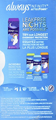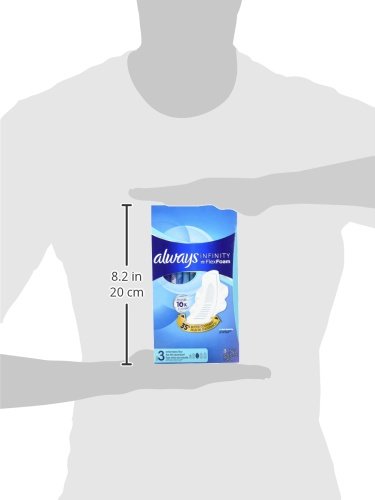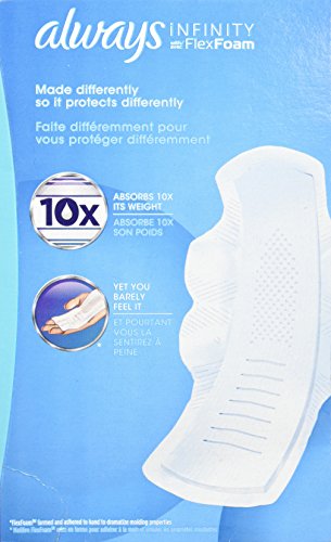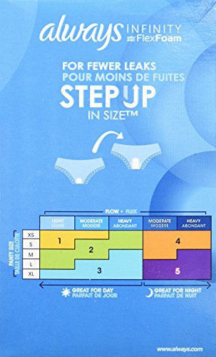 Say hello to the world's first foam pad with always infinity. Made with an ultra-light flex foam material, this form-fitting, revolutionary pad absorbs 10x its weight and molds to your body shape, so you barely feel it. And now you can customize your fit with always my fit, a tailored sizing system to help you find the best protection based on both your flow and panty size. Use the sizing chart in the images to find your fit for day and night. For our best daytime protection, always infinity size 3 heavy overnight pads with flexi-wings are designed with a 35% better coverage for incredible protection. Vs. Always infinity regular with wings.