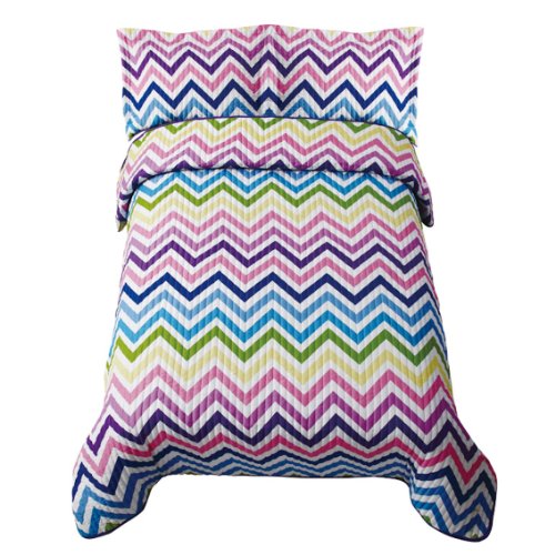 Studio : Pem America Publisher : Pem America Product Description Fun zig zag stripes in a rainbow of colors are sure to kick up the fun in any bedroom. This pattern is easy care and a great value! Features twin Quilt 68 x 86 inches and 1 standard size sham 20x26 inches. Fill and face are 100% hypoallergenic polyester. Machine wash cold, gentle cycle, tumble dry low. Made in China. Items not specified are sold seperately. 0