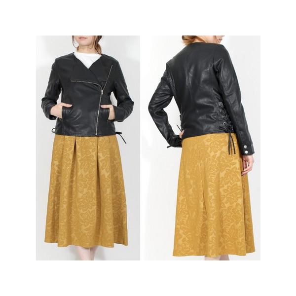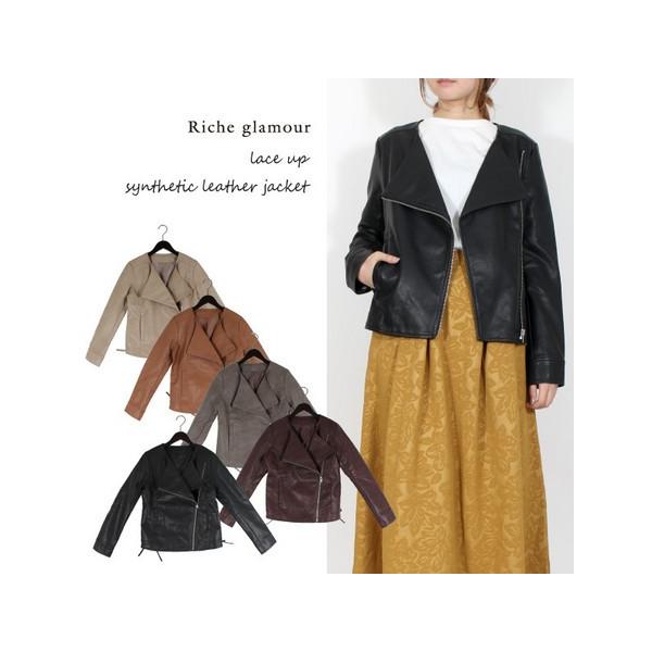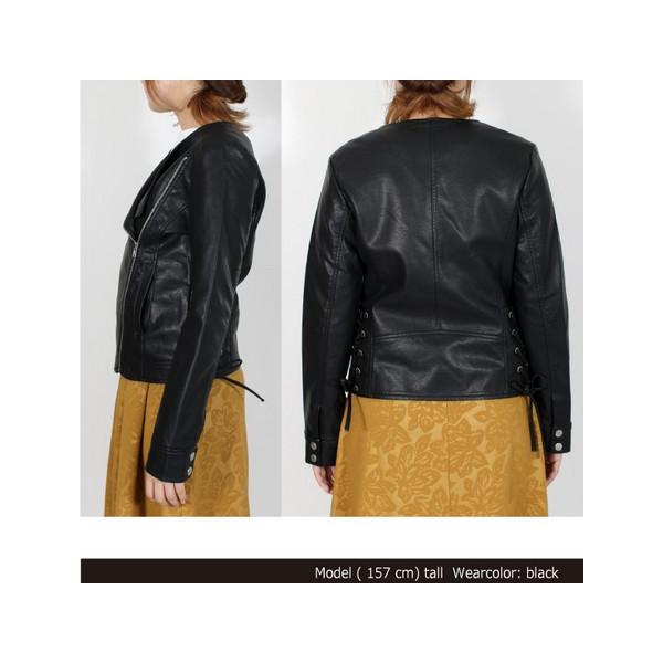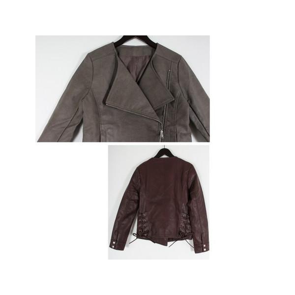 サイドのレースアップが超キュート♪【サイズ】 着丈:F57B53cm 、肩幅:38cm、バスト:92cm、袖丈:58cm、袖口:25cm、裾周り:93cm【素材】 表地 合成皮革 裏地 ポリエステル100%