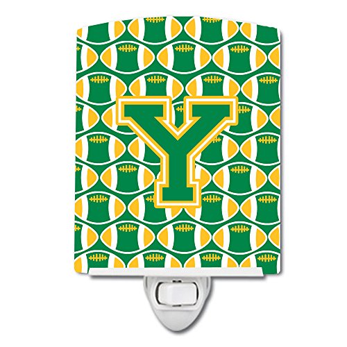 Caroline's Treasures Letter Y Football Green and Gold Ceramic Night Light, 6 x 4", Multicolor