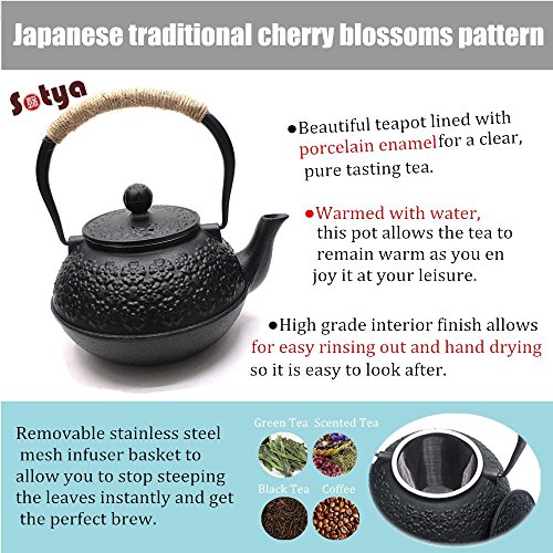 Product Description Instructions for Use ●When start to use the japanese teapot for the fist time, 10 g first tea (or lemon) into the pot, add water to boil for 10 minutes to get rid of the interior odor of the new Kettle. The tannins contained in tea and the iron parts dissolved from iron will take a reaction and form a layer of iron coating tannins, which make japanese tetsubin not easy get rusted. Once the water is boiled, pour off water from large teapot, and repeat with fresh water 2 to 3 times, until the water clear. Advise new pot to use every day, let the Scale rapid adhesion. ●Asian teapot is more suitable for the charcoal fire, and electric fire, electric ceramic stove can also be replaced. The moderate output would be good, because iron bottle need to be gradually heated. Then the iron can be released and enhance the taste of water, which helps our body absorb minerals;