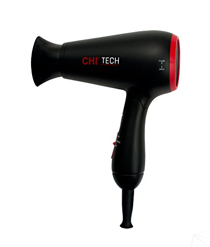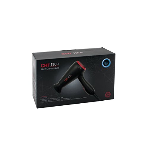 CHI Tech Travel Ceramic Heater Shiny Hair Dryer, 1400 Watts, Black, 1 lb.