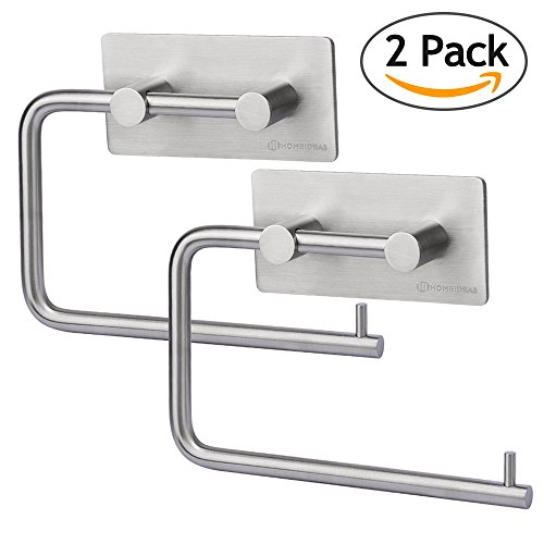 HOMEIDEAS 3M Self Adhesive Toilet Paper Roll Holder SUS304 Stainless Steel Bathroom Paper Towel Dispenser Stick On Sticky Tissue Roll Hanger,Brushed Finish,Pack of 2